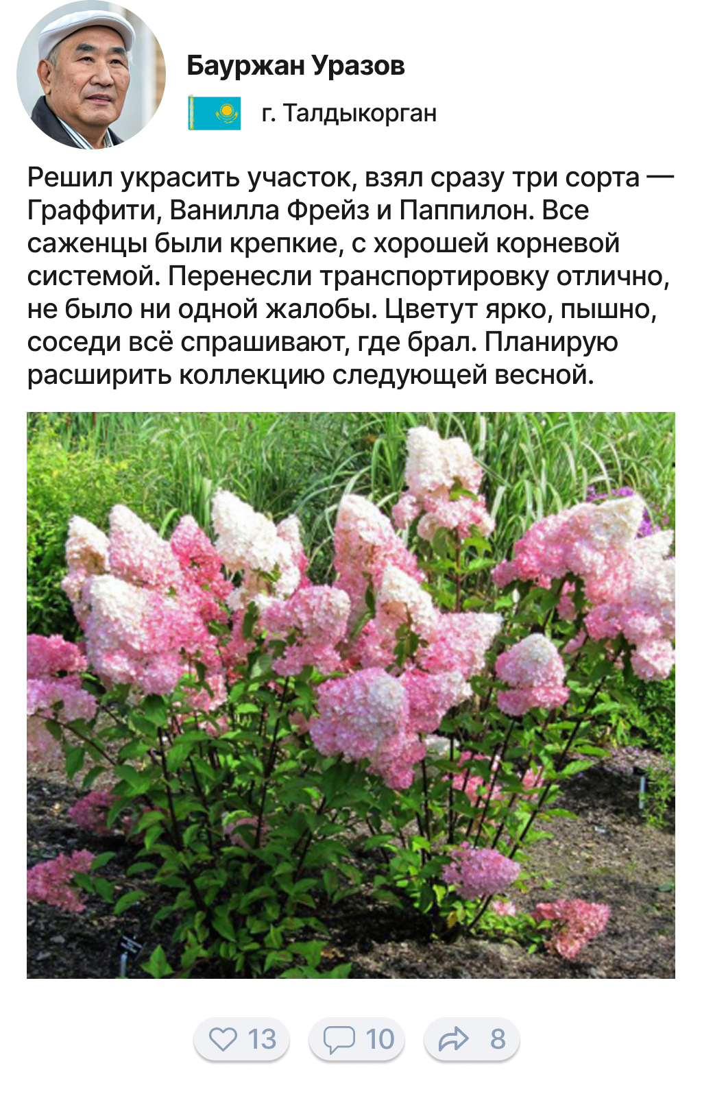 Быстрый результат и долголетие (цветение на следующий сезон после высадки саженцев и 9 лет вы сможете наслаждаться красотой метельчатых гортензий)