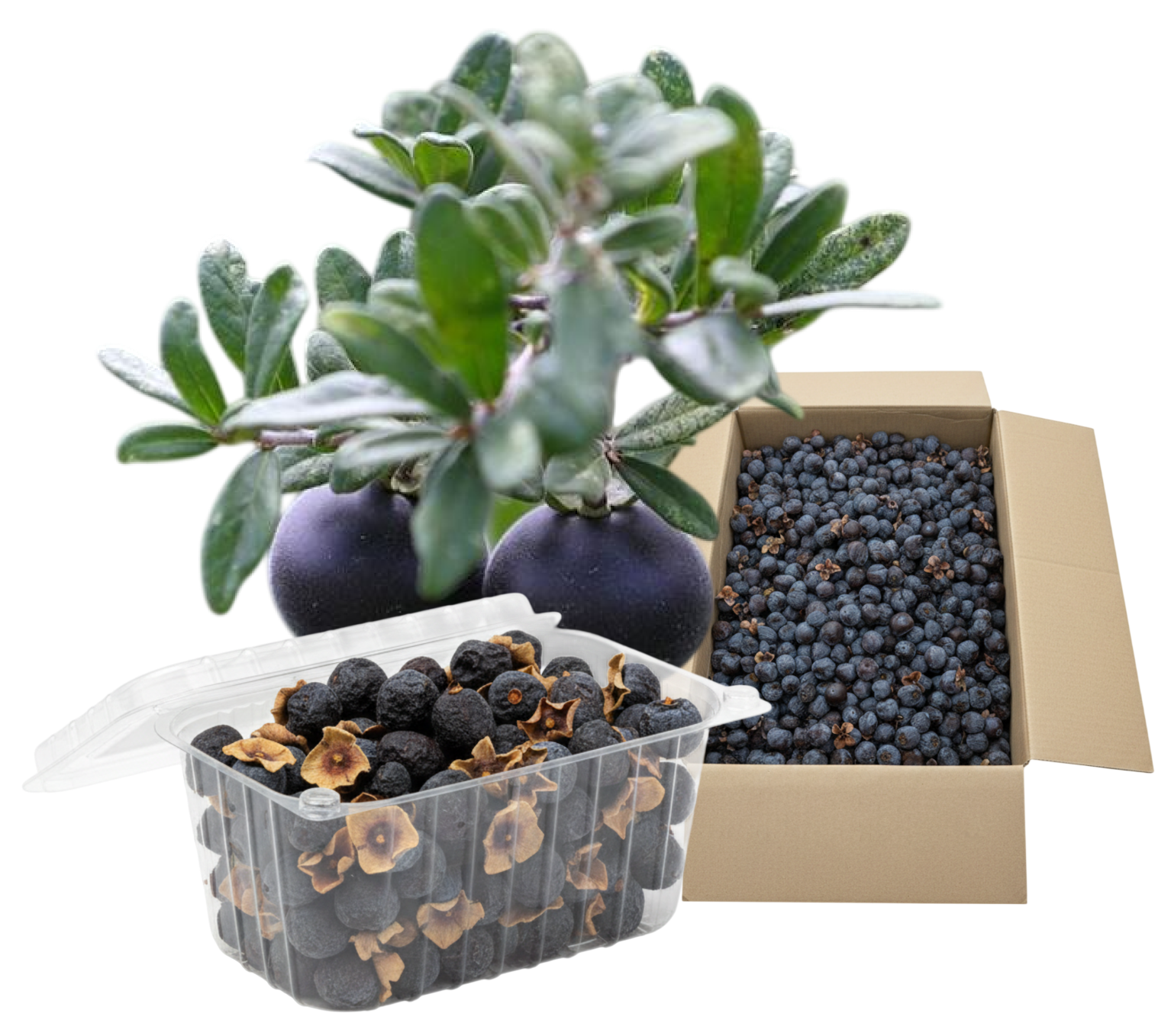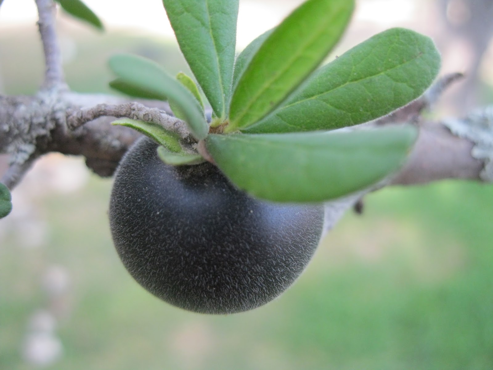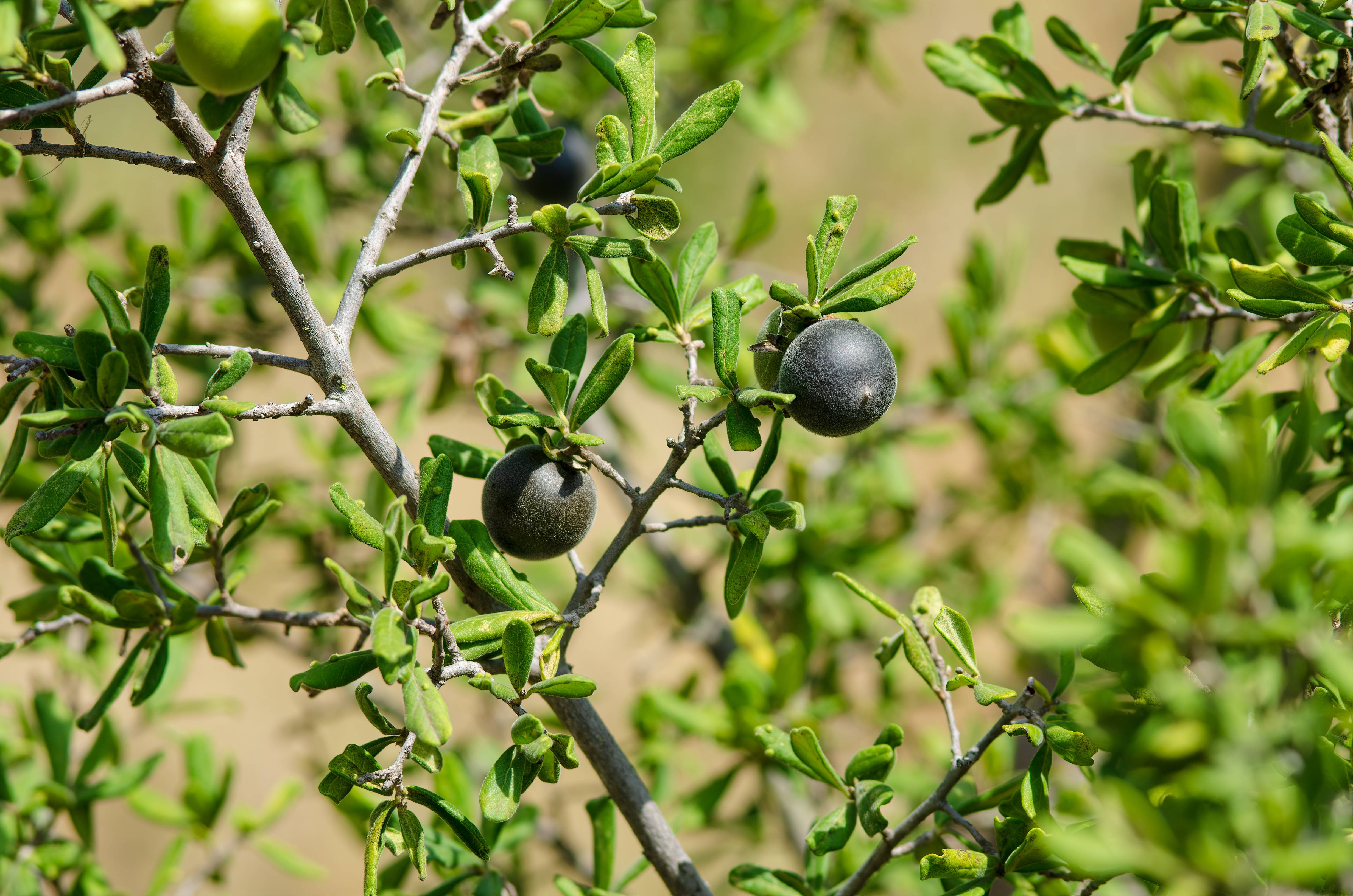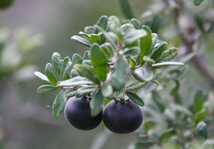 Низкорослое дерево или крупный куст с очень тёмными плодами при созревании. Мякоть сладкая, плотная. Ценится за необычный внешний вид, красивую крону и устойчивость к засухе.