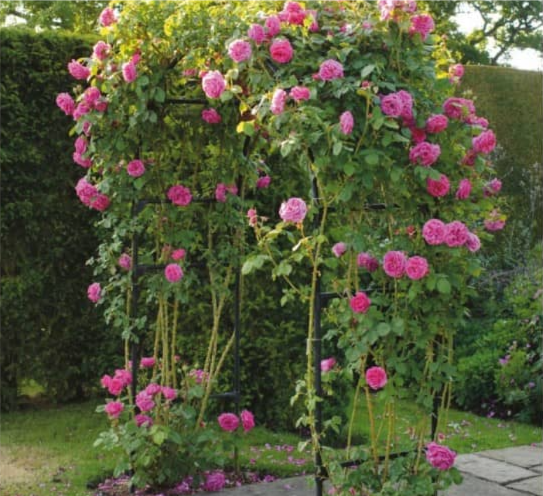 Используйте плетистые розы для создания живых изгородей, украшения арок, беседок или создания укромных уголков в саду.